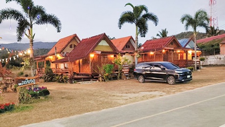 | แวะสัมผัสบ้านไม้..บรรยากาศดี วิว.. มองเห็นวิวภูเขา ทุ่งนา และวัดสมเด็จภูเรือมิ่งเมือง |