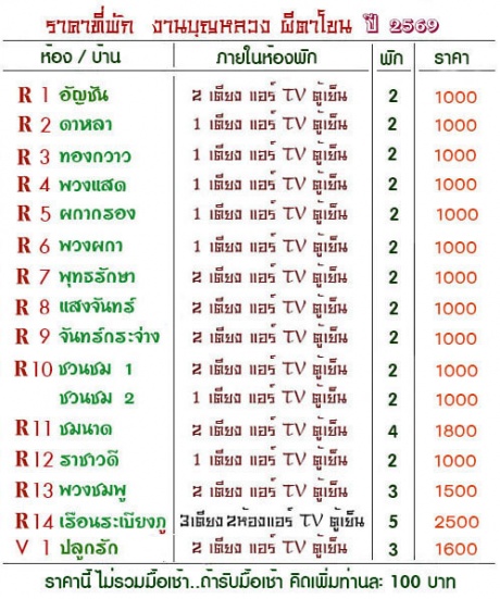 | ราคาห้องพักงานบุญหลวงผีตาโขน ป.. |